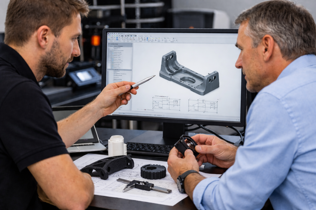 Wir sehen uns nicht als reinen 3D-Druck Dienstleister, sondern als verlässlicher Partner, der gemeinsam mit Ihnen passende Lösungen erarbeitet.